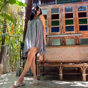 Delicate natural cotton fabric made into cute unique dress natural dye . A flattering A shape.