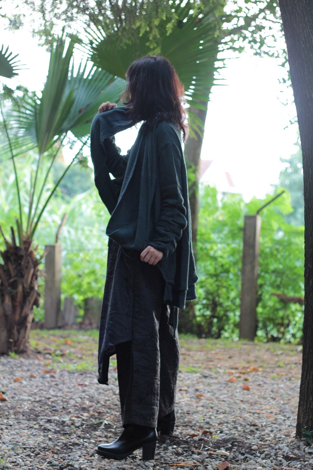 We had a lot of fun designing this piece! A mixture of cardigan top and scarf. Turn out to be a super funky/versatile piece.
