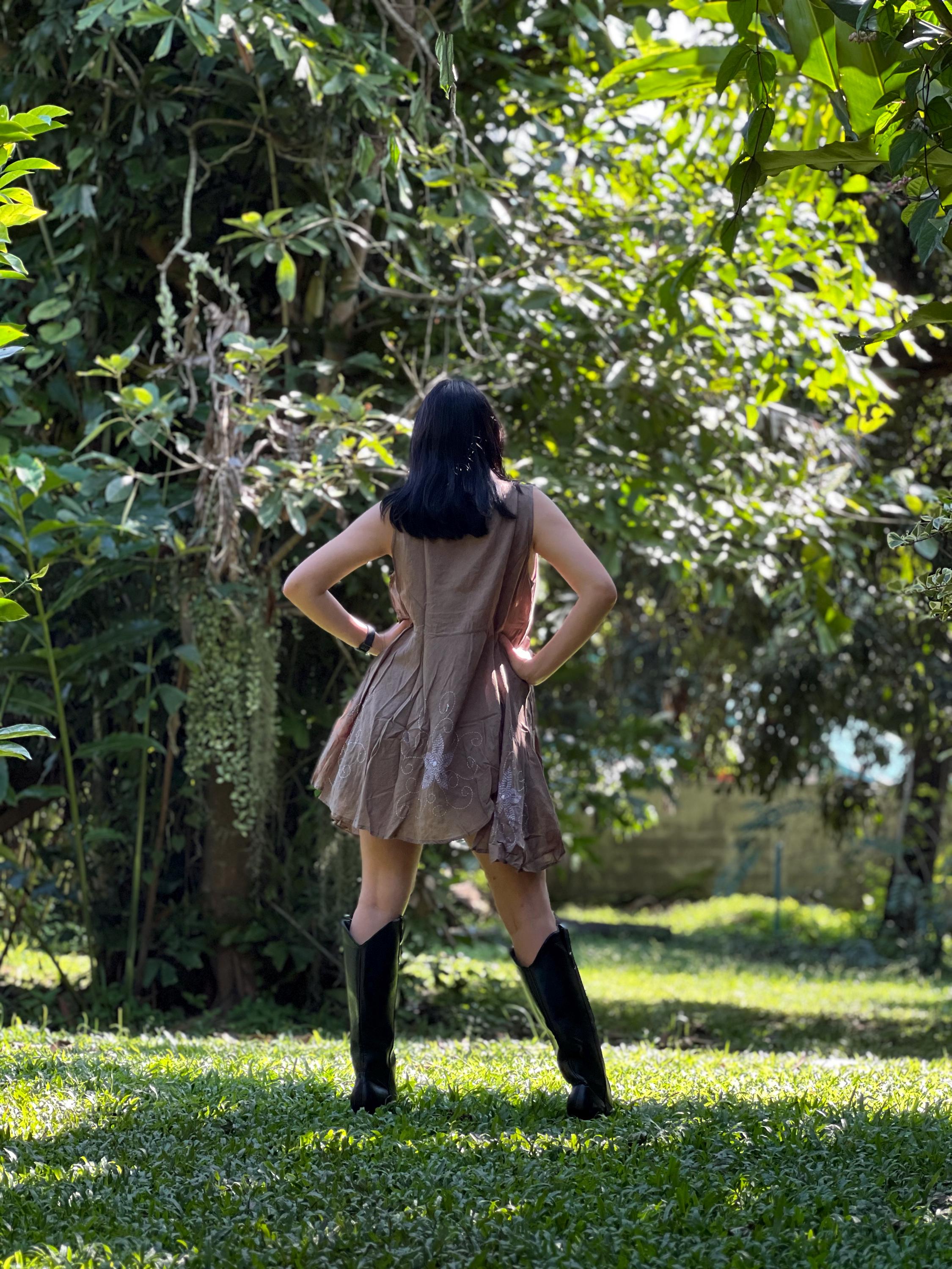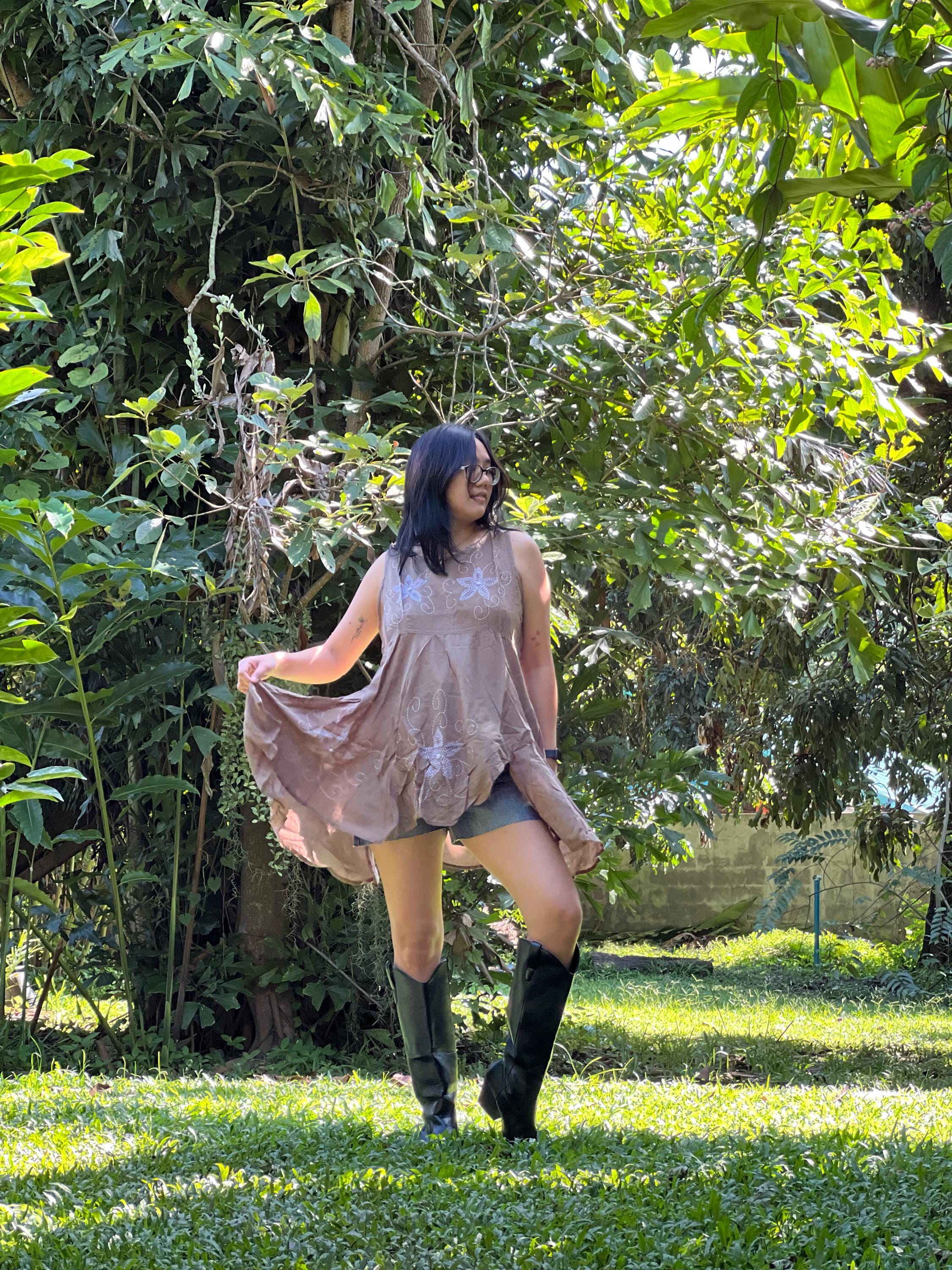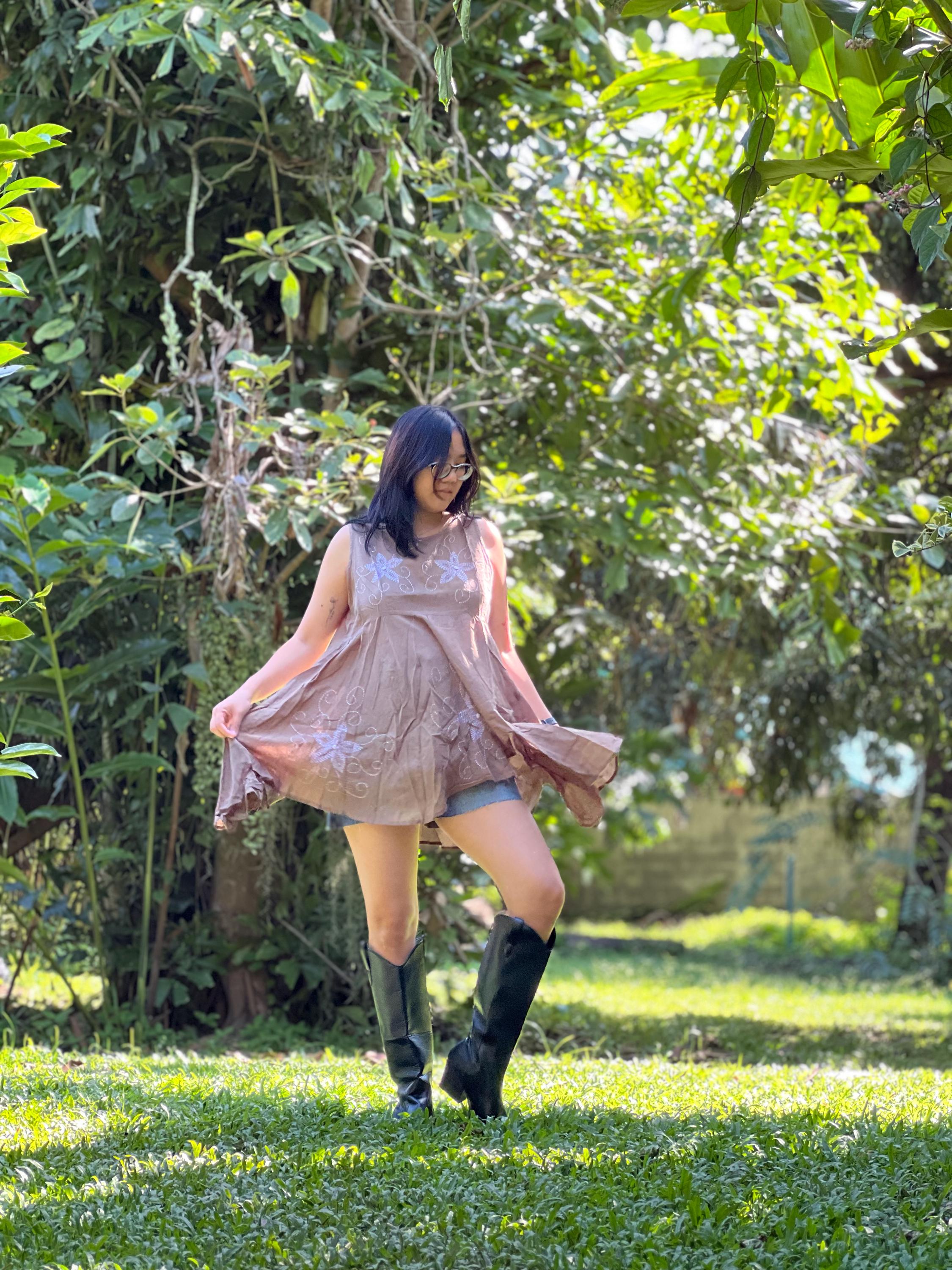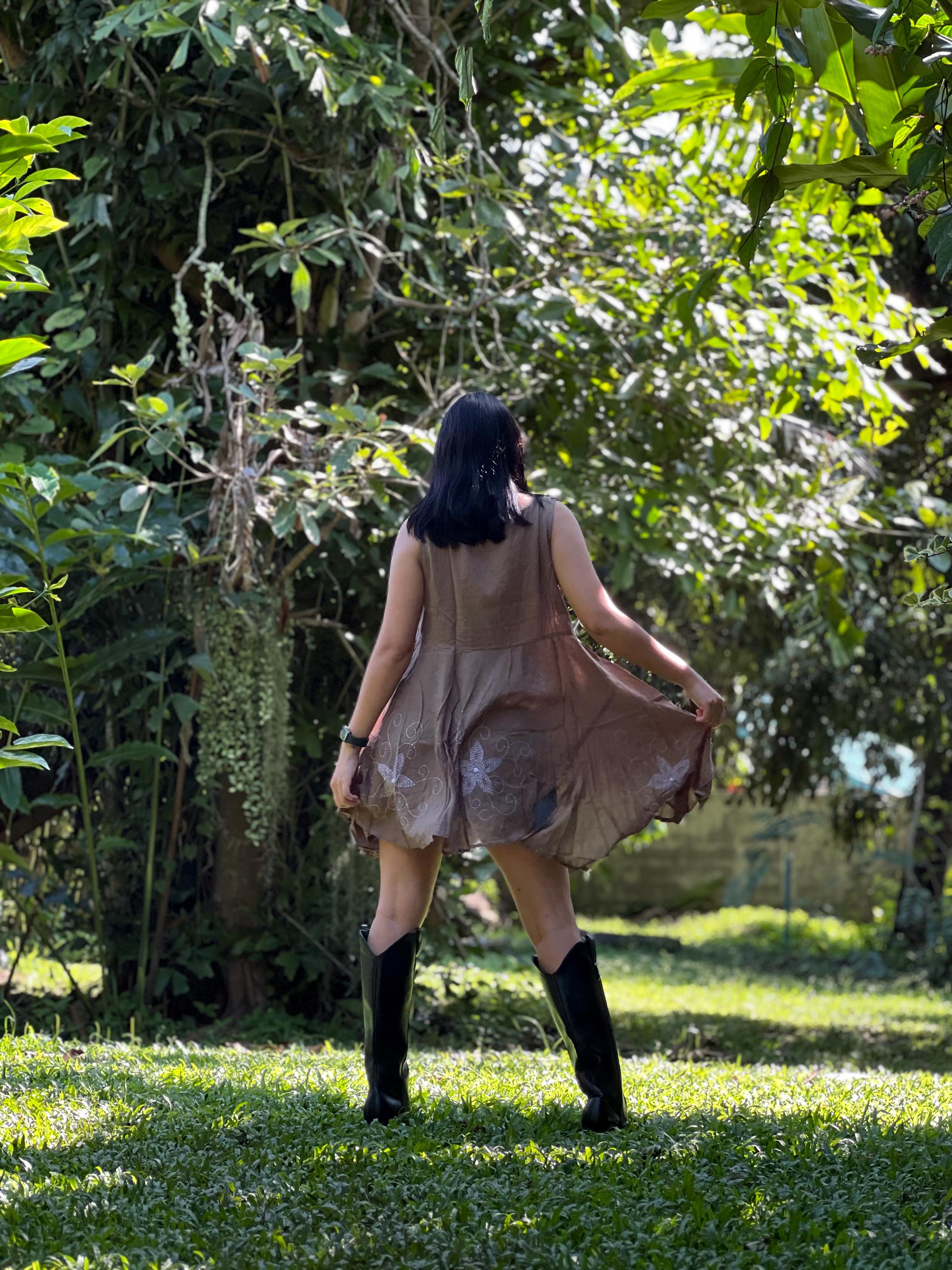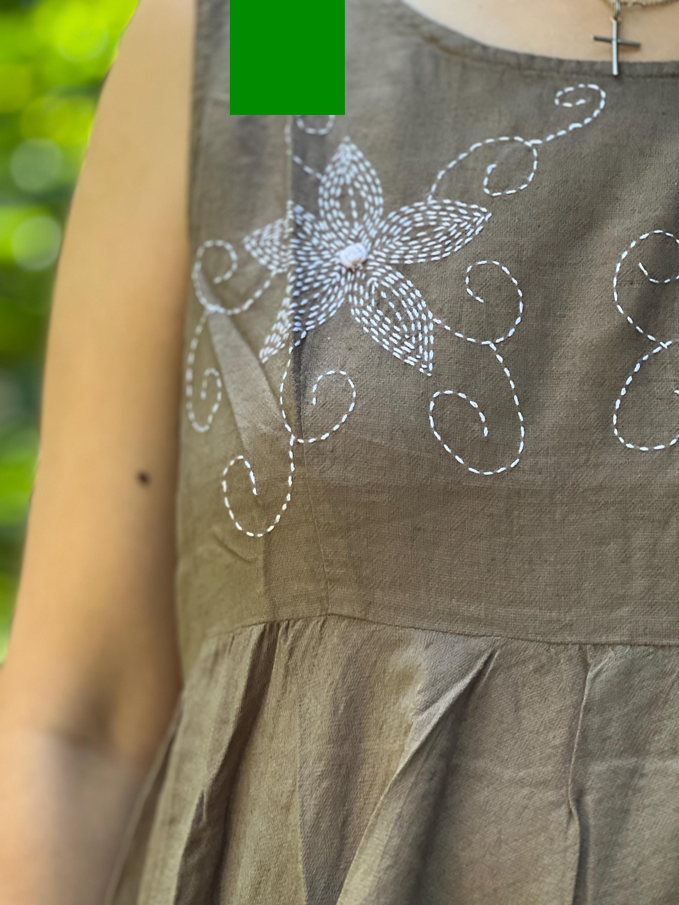 Hand-Embroidered Floral Cotton Tunic: Sleeveless Asymmetric Top