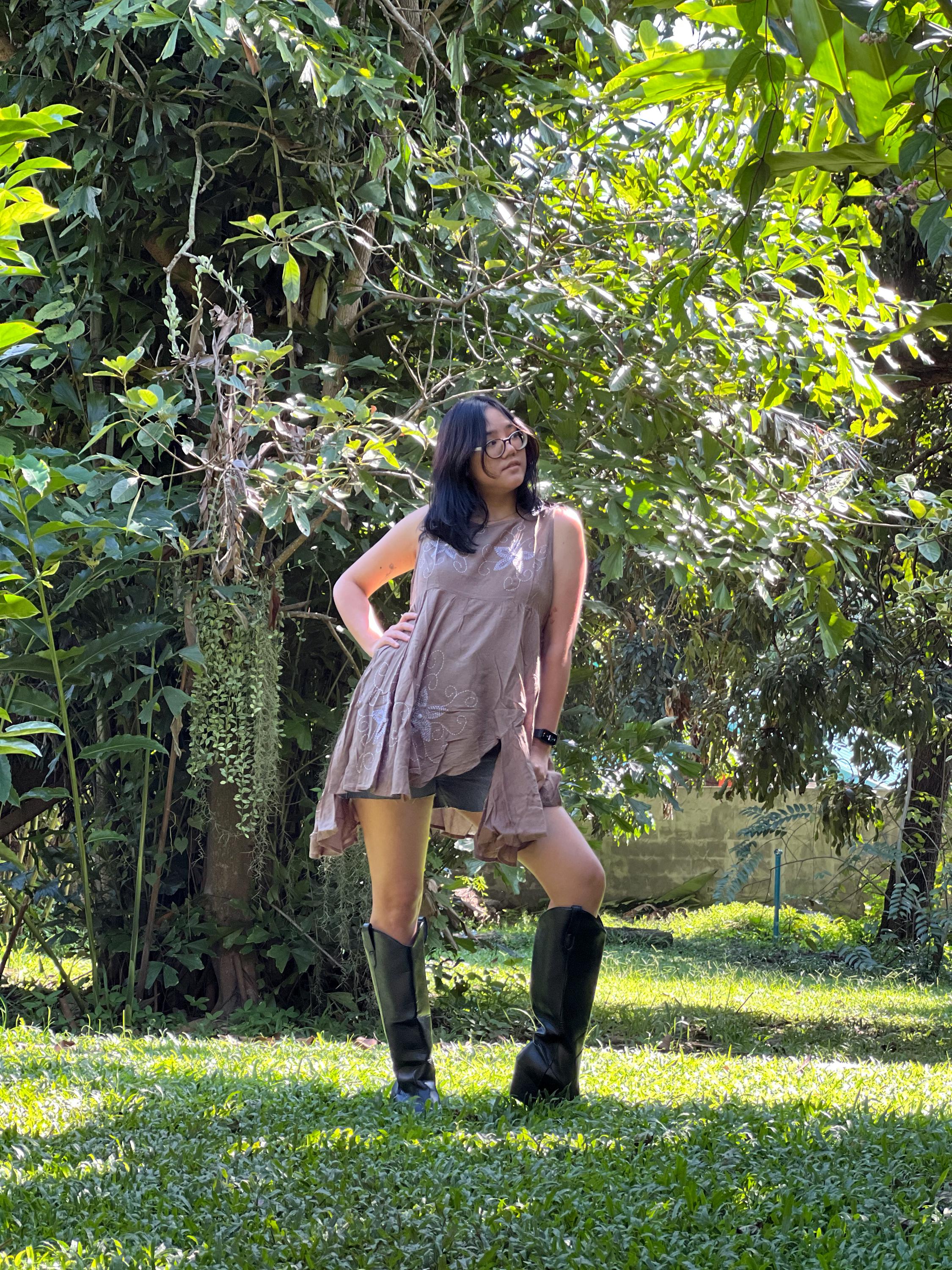 (For your reference model is a size 8-10 with 34" bust, 41" hip and 5'5" tall)
